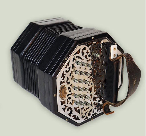 Wheatstone and other manufacturers also made concertinas, which combined Wheatstone’s basic instrument design along with key arrangements that were different from the original English alternating-note system. The most popular of these modifications, which most importantly restored the intuitive order in which high and low notes are placed on the right and left respectively, was the one that borrowed the keyboard layout from a German instrument, which is also the basis of the modern button accordion. The resulting “Anglo-German” concertina-confusingly abbreviated after World War I to just “Anglo”-is the kind Jonsi is pretending to play in Game of Thrones. Even more confusingly, Anglo concertinas are very popular among traditional Irish musicians today.
